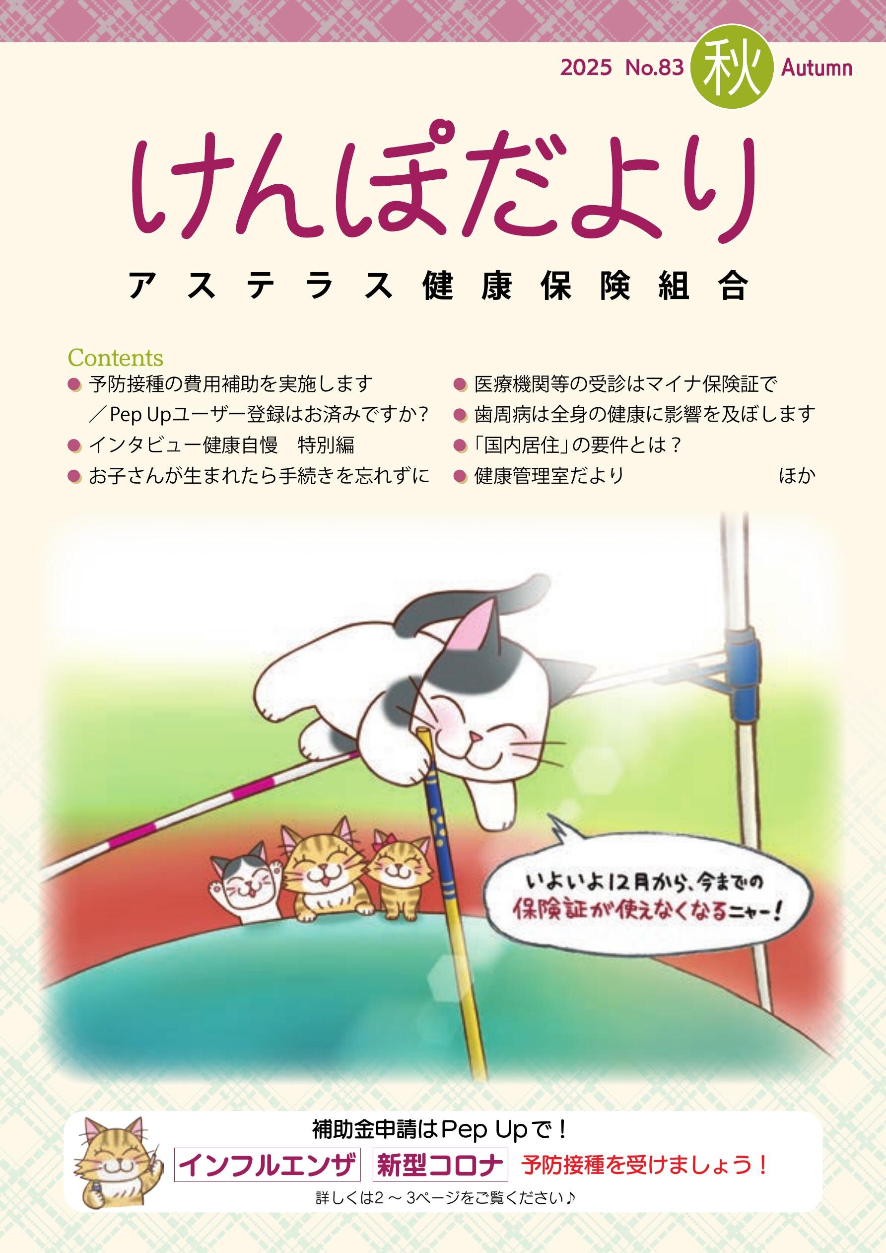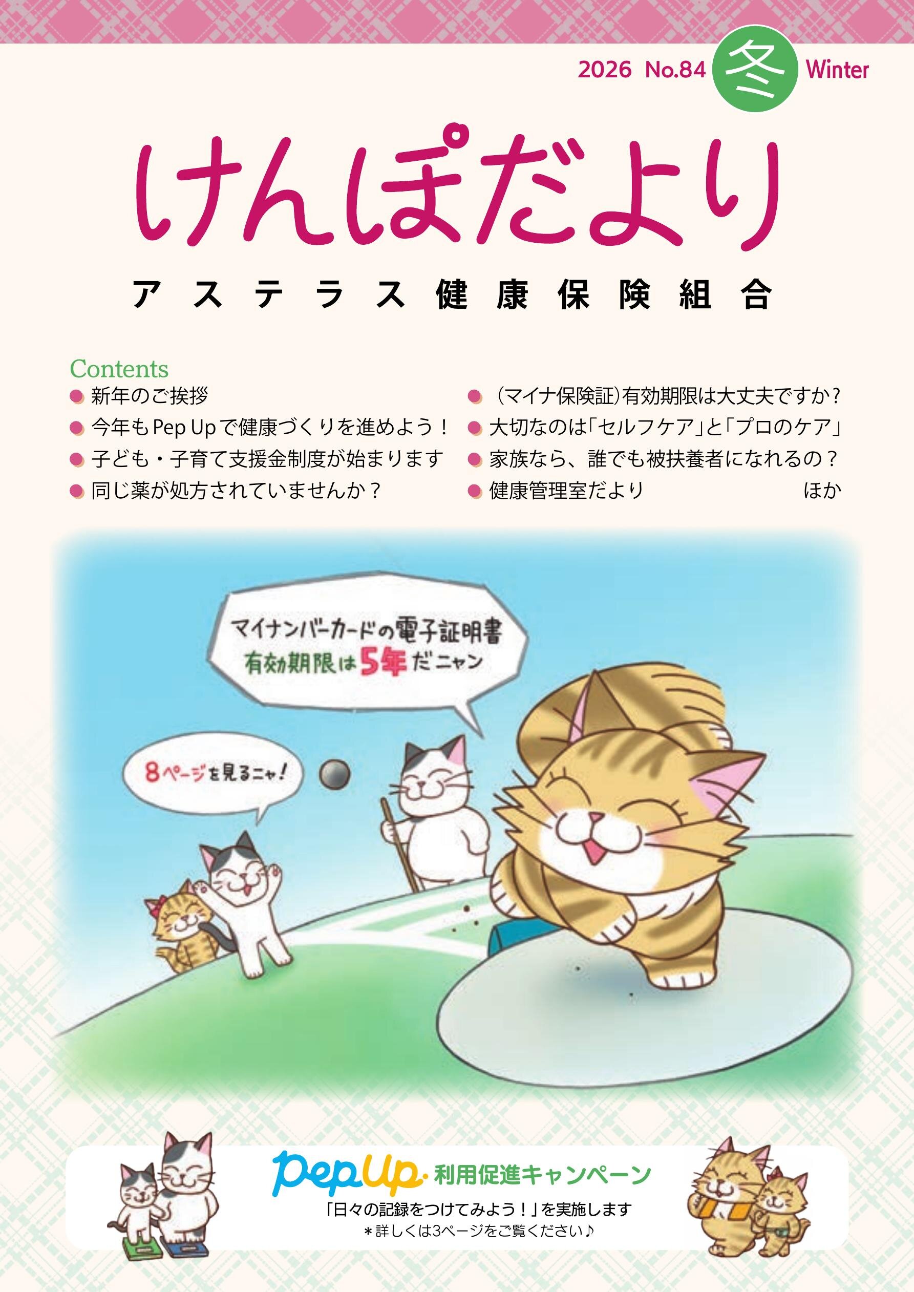 ホームページ閲覧用のパスワードは、バックナンバーには掲載していませんので、お手元の機関誌『けんぽだより』にてご確認ください。